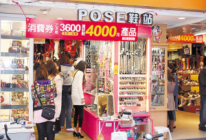 1月18日,台北闹市西门的一家商铺打出优惠标语,吸引顾客用消费券消费。台湾行政当局从18日早上8点开始在各地14200多家发放所向每位居民发放3600元新台币的消费券,共计850多亿元新台币以期刺激台湾不振的消费市场。