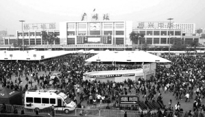1月16日,广州火车站广场上人流如潮。当天,广州火车站客流急剧上升,总计发送旅客21万人次,迎来春运客流高峰。新华社发