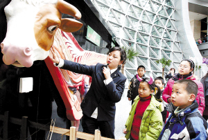 1月20日,小学生们正在了解牛的身体构造。当日,“已丑牛年生肖科普活动”在上海科技馆开幕。活动通过图片讲解及多媒体演示,让学生们感悟植物、动物与人类的密切关系,并了解多种乳品营养等科学小常识,丰富学生的寒假生活。