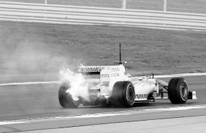 21日,德国车手格洛克驾驶的丰田TF109赛车在试车过程中引擎起火。1月19日至22日,各车队在葡萄牙波尔蒂芒对F1新赛车进行首次正式试车。