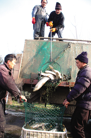 在市区莲花路上,卖鱼的人、买鱼的人脸上都挂满笑容。一位市民说,过年了,买鱼象征着年年有余,求个好兆头。