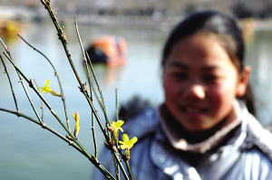 周口人民公园里几朵金黄的迎春花在枝头盛开,争相报春。一朵朵黄灿灿的小花就像一张张春意盎然的笑脸,过往的市民见到迎春花开了,都说:“春天来了。”本版图片由晚报记者 朱海龙 摄