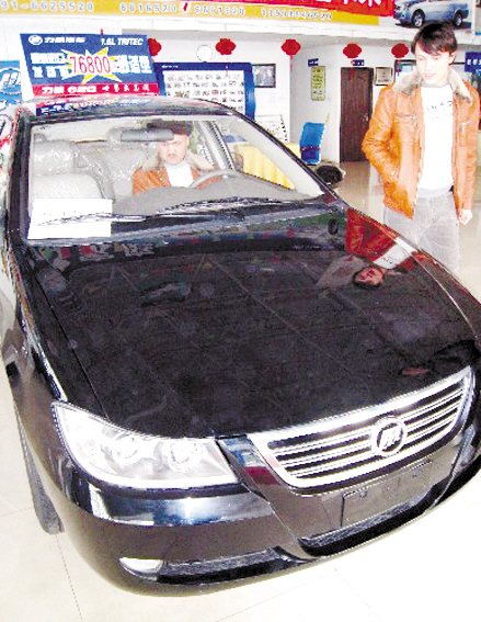 1月31日,顾客在乌鲁木齐一家汽车销售店里挑选小排量汽车。春节期间,乌鲁木齐众多汽车销售公司的小排量汽车销售继续走俏。据了解,国家关于振兴汽车行业、鼓励小排量轿车发展的政策给车市很强的刺激,加上油价下调,经销商纷纷开展让利销售活动,使小排量车开始走俏。仅2009年1月1日到20日,乌鲁木齐一些汽车销售公司的0.8至1.6排量的轿车销售