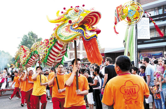1月31日,在南非约翰内斯堡,当地华侨华人在街头进行舞龙表演。中国传统节日——春节受到越来越多外国人的关注。当天,旅居约翰内斯堡的华侨华人和当地各界人士在约翰内斯堡街头举行春节庆祝活动,庆祝中国农历牛年的到来。 新华社记者 梁尚刚 摄