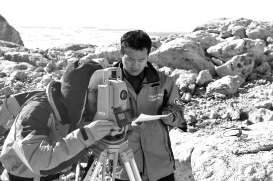 中山站时间2日9时25分,我国首个南极内陆考察站——中国南极昆仑站正式开站,中国第25次南极科考队内陆冰盖队队长李院生被任命为首任站长。 图为我国南极考察队在利用全站仪测量达尔克冰川运动。新华社 发