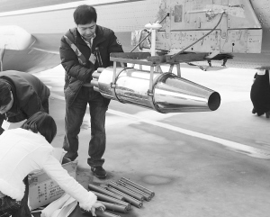 2月8日,在郑州市新郑机场,工作人员往飞机上装挂人工增雨用的碘化银催化剂。当天上午,空军运输航空兵某师两架“运七”飞机分别在安徽省的淮北地区和我省的洛阳、渑池、鹤壁、滑县、开封等地上空顺利实施人工增雨作业。