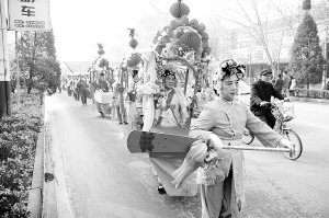 2月9日上午,商水县东城区王沟桥的踩高跷表演队,吸引了众多市民的围观。在《送闺女》演出中,有位书童打扮的“傻小”,踩着高跷,满脸稚气,他时而拿鞭赶马,时而哭笑耍闹,把喜婆和众老汉弄得哭笑不得。“好,好,闹得好!”人群中不时有人叫好加油。