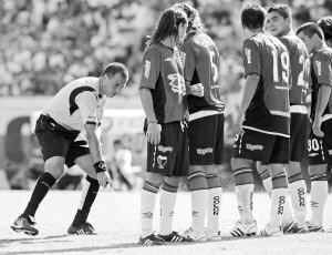 本报综合消息 在足球比赛中,双方队员都会为直接任意球的罚球点与排人墙的位置发生争执,主裁判也一直为确定人墙和足球保持9.15米的距离而头疼。现在,阿根廷体育记者帕布罗·席尔瓦发明的神奇喷雾剂却有望改变这一局面。在近日举行的阿根廷秋季甲级联赛中,主裁判全部装备了一种特殊白色喷雾剂,用于帮助确认罚球点和人墙的距离,有效减少了球员的争议。