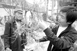 又是一年春来到。昨天,在市区文明路树苗集市上,一小伙子正在挑选玉兰树树苗。连日来市区的树苗集市又活跃起来,很多市民在集市上选购树苗,装扮庭院。市场上的树苗成了“抢手货”。