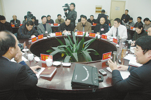 昨日上午,市二届人大四次会议商水代表团代表认真审议政府工作报告。 晚报记者 朱海龙 摄