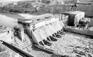 黄河龙口水利枢纽大坝已基本建成,施工人员已开始安装发电机组(2月15日摄)。龙口水利枢纽是继黄河中游万家寨水利枢纽之后的又一大型水电工程,同时也是万家寨水利枢纽的反向调节水库,水电装机容量为420兆瓦。到2009年6月第一、第二台机组将同时开始投产发电,今年年底全部机组可开始发电,电力将进入晋蒙电网。