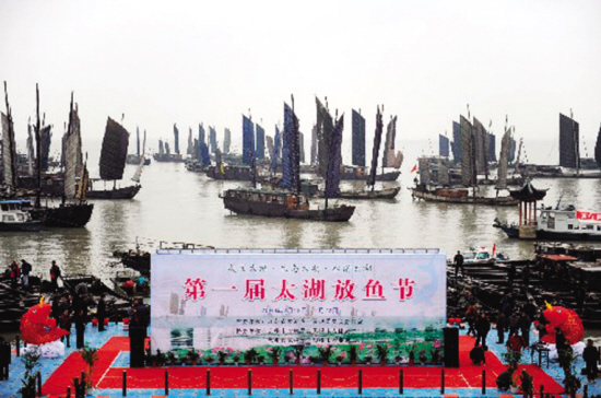 2月18日,第一届太湖放鱼节在苏州市吴中区光福漫山水域举行启动仪式。主题为“美丽太湖、生态太湖、和谐太湖”的太湖放鱼节为期5天,将在江苏省苏州、无锡、常州和浙江省湖州的8个放鱼点投放花鲢、白鲢、草鱼等各类鱼种共60多万公斤、1000多万尾。据悉,这是太湖有史以来最大规模的放鱼活动,共投入放鱼经费740万元,也是在生态治污、以鱼养水、渔