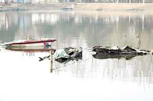 2月28日清晨,在周口人民公园落花湖边散步的人都闻到了一股刺鼻的焦糊味,有人发现,湖内有几只游船被烧得面目全非,便打电话报了警。记者于当日上午9时许赶到事发现场时,落花湖周围仍弥漫着难闻的焦糊味,湖上散落地漂浮着10艘游船,有两只船上依然有明火在燃烧。据现场的市公安局沙南分局刑警大队民警介绍,经他们与消防部门详细勘察与了解,没有发现人为纵火的明显痕迹。