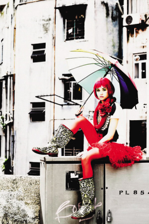 花式的雨靴是坊间最大热的,虽然款式不如净色的雨靴容易搭配衣服,但胜在变化较多较抢眼。因属较抢眼的雨靴类,所以用作配搭浮夸的行头就最恰当,如模特以豹纹雨靴配红色纱裙及夸张饰物便会很抢眼。如若觉得浮夸的造型太难把握的话,改以亮色为主,再加上撞色的饰物,效果也会同样恰到好处。