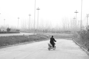 采访过程中,记者遇到骑电动车的侯先生(如图)。他说他到东新区市委党校去办事,由于是第一次走七一东路,不知道这是断头路就走错了。