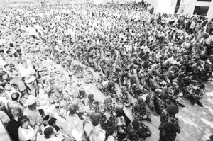 本报综合消息 孟加拉国军方2月28日在继续搜索步枪队总部的过程中,又发现两个埋有尸体的墓坑。至此,已有76人在步枪队哗变中遇难,其中多为军官,此外仍有72名军官失踪。这起孟加拉国历史上军官死亡人数最多的事件引起极大震动,军方要求严惩哗变者。英国《每日电讯报》3月2日报道,根据孟加拉国法律,一些哗变士兵可能面临绞刑。