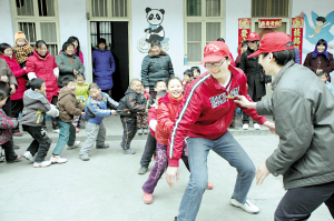 昨天下午3时许,头戴小红帽的青年志愿者刚到市聋儿康复中心,孩子们便迫不及待地从教室中跑出来,迎接这些准备和他们玩一个下午的哥哥姐姐们。青年志愿者与孩子们手牵手玩起“猫捉老鼠”“老鹰捉小鸡”等游戏,整个康复中心欢声笑语。游戏过后,青年志愿者还手把手地教孩子们画画、写字。