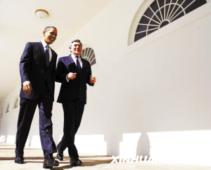 3月3日,在美国华盛顿白宫,美国总统奥巴马(左)和英国首相布朗举行会晤。
