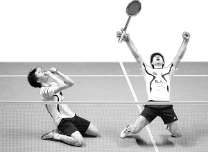 本报综合消息 北京时间昨天凌晨,当全英羽毛球公开赛结束了最后一个项目男双的决赛时,夺冠的蔡赟/付海峰一同双膝跪地庆祝。中国羽毛球队开创了历史,他们成为第一个在有“小世锦赛”之称的全英赛上,包揽全部5个单项冠军的队伍。