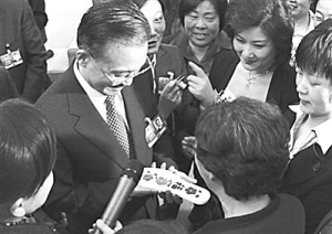 “谢谢,谢谢,谢谢!”7日国务院总理温家宝参加完湖北团的讨论后,英山县温泉镇百丈河村党支部书记王金初递上特殊礼物——一双由村里89岁老人田桂华用18天时间亲手缝制的鞋垫。温总理连道三声谢谢。