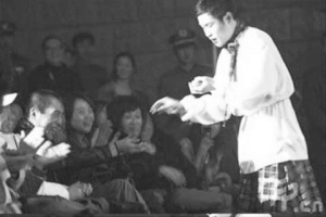 本报综合消息 7日下午,小沈阳领衔的“2009笑转全国演笑会”的发布会在京举行。在发布会现场,小沈阳扮成唐僧,和妻子扮演的女儿国国王,惹得观众爆笑连连。张艺谋也在第一排观看了小沈阳演出,小沈阳在旁边吃水果,还跑到前排观众席,把手里的橘子和苹果分给张艺谋和他的团队(上图)。张导也毫不客气,吃了水果给足小沈阳面子。据知情人士透露,张艺谋为小沈阳捧场,有可能让他在新片中演角色。据悉,此次由小沈阳领衔的巡演将在全国举行45场。有记者问:“正在召开的两会,有代表评价小沈阳的表演很俗,你们怎么看?”对此,小沈阳的经纪人高大宽称,“俗,仁者见仁,智者见智,我们主要是制造快乐”。 (杜恩湖)