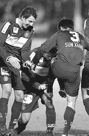 在上周,就是孙祥的任意球帮助球队战胜了对手,昨天又是他在第40分钟先拔头筹。连续3场比赛取得进球,难怪队友心甘情愿为他擦鞋。
