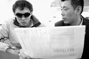 3月15日,班主任老师向残奥会冠军杨博尊(左)讲解课程安排。当日,2008年北京残奥会冠军、盲人游泳运动员杨博尊被天津广播电视大学新华分校行政管理专业录取。学校将以专门的语音授课和考试方式帮助杨博尊完成学业。
