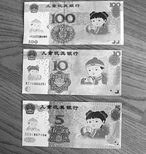 本报综合消息 近日,记者在天津部分中小学周边的商店和地摊上,发现不少被称为“少儿版人民币”的非法印刷品,其反面与正规钞票基本相同,正面印有卡通人物造型和“儿童玩具银行”的字样,面额与市场上流通的人民币一模一样。(王晔彪)