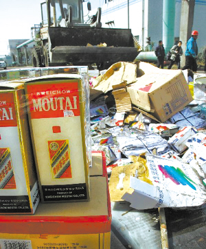 3月15日,在芜湖市垃圾焚烧发电厂,铲车将假冒伪劣商品碾碎以便垃圾焚烧发电厂焚烧。 当天是国际消费者权益日,安徽省芜湖市在垃圾焚烧发电厂对价值约210万元的假冒伪劣商品进行销毁。集中焚烧的药品、食品、建材等假冒伪劣商品共300多个品种、2万多件(箱),可发电6000多度,实现打假维权与环境保护并重。 新华社发 陈立希 摄