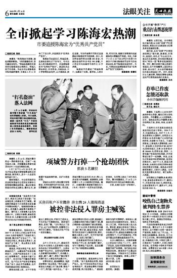 全市掀起学习陈海宏热潮