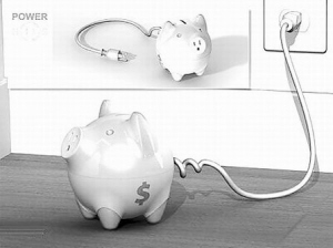 这只长相可爱的绿色电能猪设计初衷是让小朋友知道我们生活中最常用的电能并不是无偿使用的,而是需要用钱来换取的。小朋友需要从小猪背上放入硬币,才能接通电流玩电动玩具。事实上,这个装置构造非常简单,只不过是一个转换插座,但它想要传递的是一种概念。 (网易)