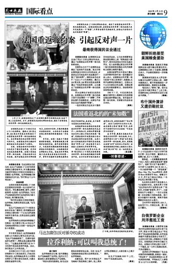 国民议会独立议员尼古拉·杜邦·埃尼昂在17日国民议会就重返北约军事一体化机构问题进行的辩论中说,在当今世界多极化格局日益明显之际,法国却选择了“西方阵营”,放弃了法国作为东西方之间、南北国家之间的“桥梁”作用,此举对于法国外交而言应该说“不是进步而是倒退”。