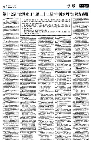第十七届“世界水日”、第二十二届“中国水周”知识竞赛题