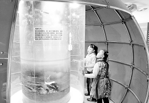 3月22日,两位小朋友在宁夏气象科普馆观看地球大气模型。
