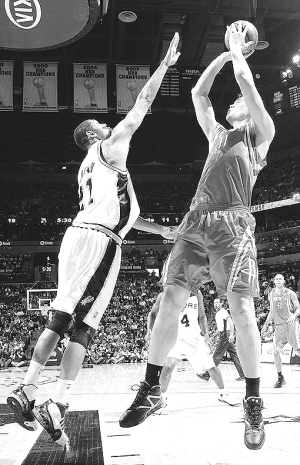 姚明8投6中,贡献13分、8个篮板、2次盖帽和2次助攻。虽然前三节有4次失误,但关键时刻姚明两次封盖邓肯、一次补扣和两次助攻斯科拉,帮助火箭如履薄冰战胜马刺。
