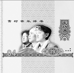本报综合消息 雪村近日推出新专辑《庆功酒》,专辑的封面上雪村头戴炼钢工人眼镜与两男子的头像居中,与旧版50元人民币正面十分类似。网友对这种恶搞人民币的做法表示强烈不满。雪村经纪人却解释,“只是相似,我们不会去恶搞人民币的”。(侯检)