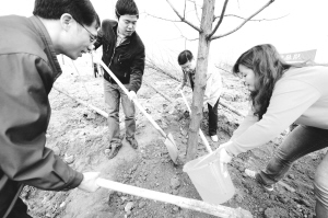 3月26日,市民在福州市公共绿地义务植树。当日,福州500多名干部群众和驻闽部队官兵来到福州东部新城会展岛公共绿地,参加以“和谐海西、绿色家园”为主题的义务植树活动,号召全社会人人参与义务植树,绿化家园。 新华社记者 张国俊 摄