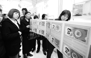 3月26日,顾客在北京蓝岛大厦奥运特许商品特卖区选购奥运商品。