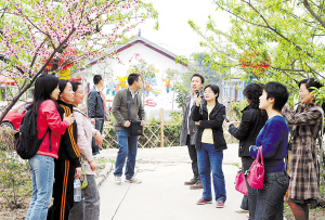 3月25日,游客在地震灾区绵竹市棚花村花前留影。四川绵竹市棚花村在汶川大地震中被完全摧毁,经过近一年的恢复重建,目前这个小村庄已重新焕发了生机。春天来临,游客们又来到棚花村赏花春游。棚花村四组农民鲜天全告诉记者,最近几天,他家开办的农家乐每天都要接待不少客人。