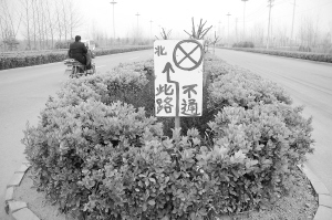 昨天,在市区七一东路,一块市民自制的路牌出现在绿化带中,以提醒路人不要走冤枉路。3月3日,本报以《断头路缺警示牌 频频“忽悠”司机》为题,报道了这段断头路未设任何警示标志,每天在此耽误时间的车辆达数十辆。如今,有好心市民抢在有关部门前头为过往车辆、行人提供方便。晚报记者 朱海龙 实习生 王媛媛 摄