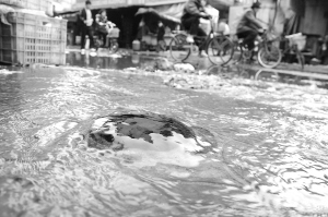 市区六一中路西侧,一个消火栓被撞断,大量自来水白白流失。昨天早上,附近居民说,自来水已经白白浪费一夜了,很是可惜! 晚报记者 朱海龙 实习生 王媛媛 摄