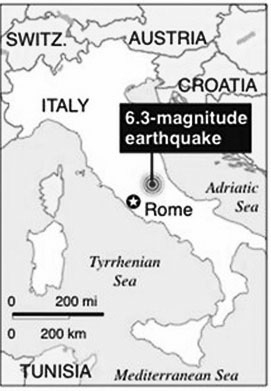 意大利公共安全部门的监测报告说,地震发生在意大利当地时间6日凌晨3时32分(北京时间9时32分),震中深度为33公里,在首都罗马东北95公里处,位于意大利中部阿布鲁佐大区的拉奎拉市。有媒体早些时候引述美国地质勘探局的报告说,这次地震震级为里氏6.7级,震中位于罗马东北85公里处。