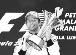 本报综合消息 5日进行的F1马来西亚站正赛遭遇了暴雨侵袭,致使比赛进行过半后被迫提前结束。布朗车队英国车手巴顿幸运地获得第一。