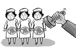 成都武侯区第三人民医院有此规定,女职工工作3年经批准方可怀孕,否则难以享受相关福利待遇。有护士因怀孕而辞职。一负责人说,女职工不可能刚上岗就要怀孕生子,要先在单位好好表现,表现好了再生娃娃。(据《成都商报》)