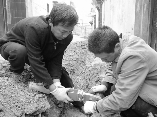 周口银龙水务有限公司安装维修人员自春节以来日以继夜抓紧改造抢修,目前周口市区计划改造的10个低压供水区已改造完毕6个。图为“银龙”工作人员在建西一巷施工。记者 刘彦章 摄