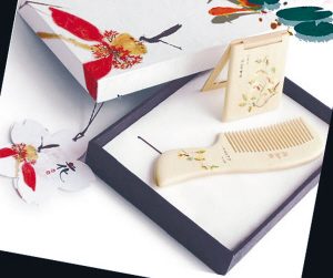 所幸在周口一峰生活广场一楼的谭木匠专卖店里,我们的愿望轻而易举就可以实现,黄杨木、桃木、紫檀木、红豆丝、沉贵宝等名贵材质雕刻成各种栩栩如生的造型,龙凤自不必说,十二生肖、花草云朵、寿星老人一并纳入,梳体上的自然纹理出入有致,颜色淡雅清新,又雕得细腻、精美,让人忘了它还能用来梳发。“谭木匠”店甚至把梳子挂满了四壁,无疑用自家的材料装饰了自家的脸面,还节省了空间,可谓匠心独具,尤其是那些经过花草汁浸染的木梳,于古朴典雅中散发隐隐幽香,琥珀色的梳体上散着几张浅色的叶片,原始森林中的一段秀木承接落叶的瞬间被时光凝在一大滴透明的松胶里。