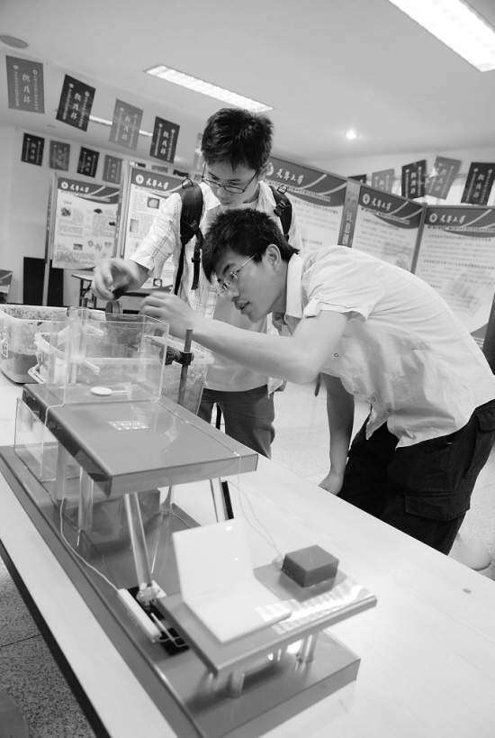 4月13日,大学生在课外学术科技作品竞赛上参观。当日,天津大学第七届天地伟业“挑战杯”学生课外学术科技作品竞赛在该校大学生活动中心举行,众多有创业意向的大学生通过竞赛验证自己的科研创新成果。为促进大学生自主创业,天津大学开设大学生职业规划与就业指导必修课,并开辟第二课堂为大学生创业搭建平台。 新华社发