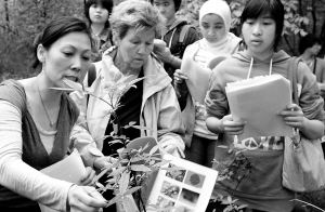 4月13日,“洋学员”们跟随老师在苏州花山实地认知与识别中草药。当天,苏州市科技进修学院国际中医培训班的一批“洋学员”来到苏州花山进行了一次中草药辨识活动,来自当地中医院的药剂医师向学员们详细地介绍了10多种中草药的性状、功效,“洋学员”们被这些花草的神奇功效所深深吸引。此项活动还吸引了不少苏州大学的留学生以及众多中医爱好者参加。新华社 发