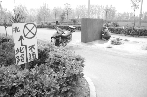 昨天上午,周口市区七一东路,工人正粉刷刚设置的提示墙,以提示路人此路不通。据了解,本报报道七一东路断头路让不少车辆路人走了冤枉路后,市政部门高度重视,设置了这面提示墙。