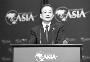 温家宝强调,工商界要在应对国际金融危机、促进亚洲地区发展方面发挥积极作用。企业家要注重社会责任,妥善处理各种风险和隐患,要善于把握世界经济调整时机,不断开拓创新,寻找新的发展机遇。亚洲发展潜力巨大,区内各类企业特别是跨国企业,只要坚守在这块土地上,尽量少关闭工厂、少裁员,加强各国企业在生产经营、技术研发等方面合作,一定能够在应对危机中实现新的跨越。